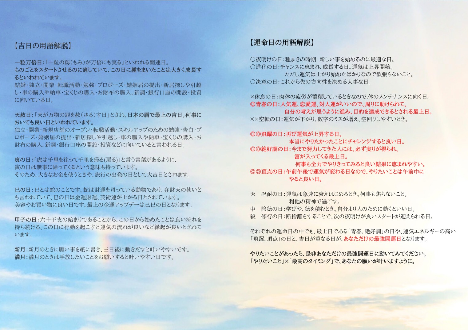 - 手帳を見るだけで運気の良い日が一目で分かる
